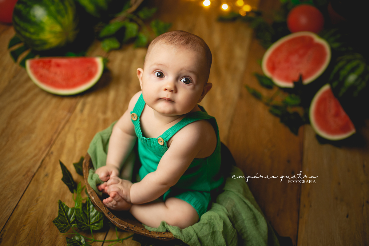 Que delícia foi o Ensaio Frutinha do João Vitor. Ele é um bebê lindo e sorridente, que curtiu muito comer a melancia!